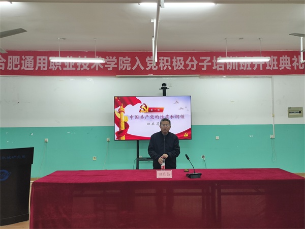 学院党委书记田启昌为本次培训班开课:《中国共产党的性质和纲领》。田书记理论讲解深入细致,引经据典,深入浅出地为同学们呈上了一堂精彩的党课。他要求同学们认真学习,引导同学们要牢记党的性质、党的宗旨,不断提升自身思想政治理论素质,并结合学习实际,将学习成果带回到同学中去,让更多的同学积极向党组织靠拢。